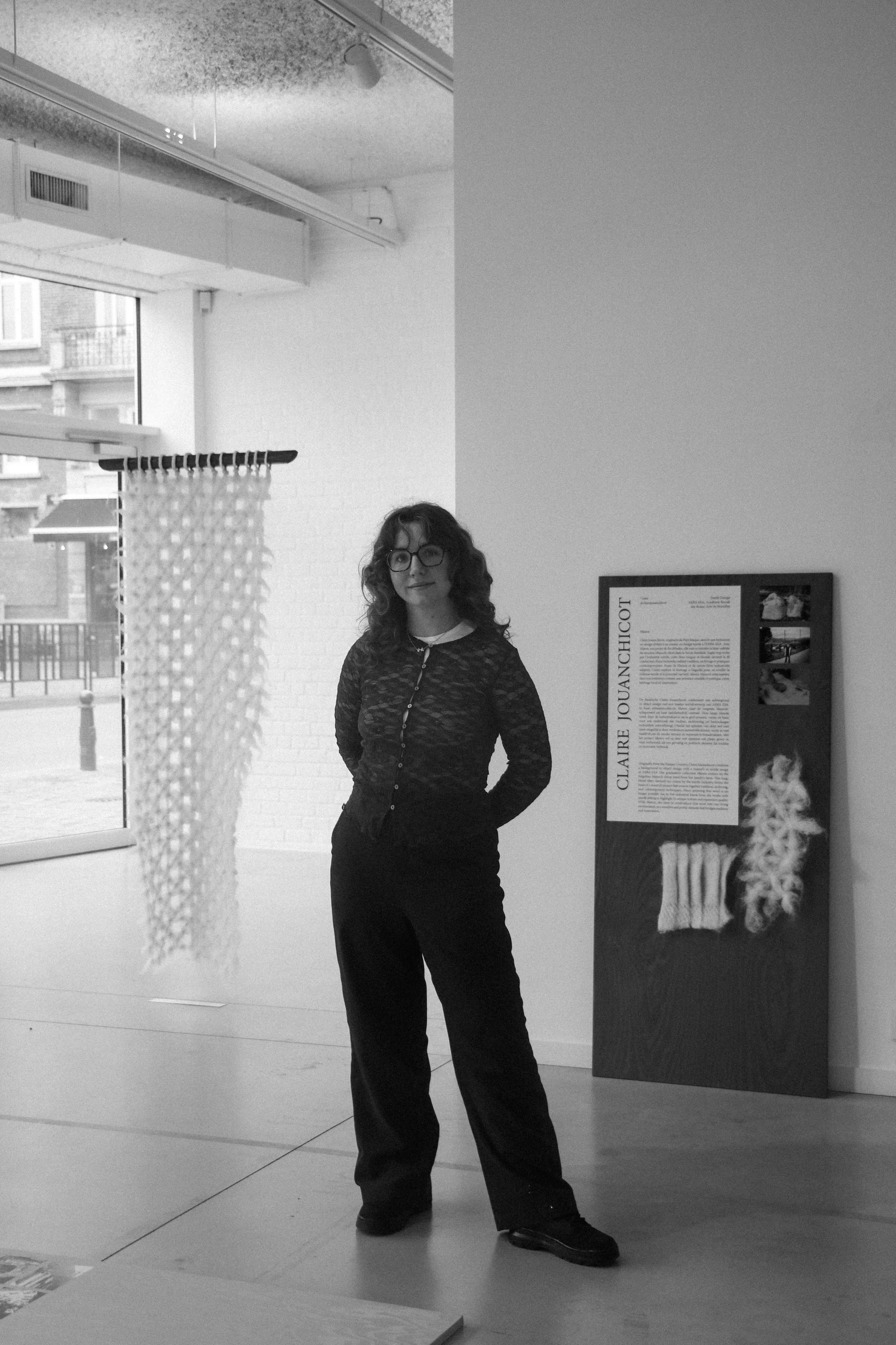 After two first training programs in Object Design at ESDMAA (France) and ESA Saint-Luc Tournai (Belgium), Claire Jouanchicot continues her journey/career within the Master in Textile Design at the Royal Academy of Fine Arts of Brussels. It was there that she devoted two years of research to a project around the wool from her family sheepfold, inscribing her practice in an intimate dialogue between matter, territory and memory. Originally from Béarn and the Basque Country, Claire strives to restore meaning and visibility to a neglected resource: the Manech Tête Rousse sheep wool. This raw and local material becomes the anchor point of reflections on the disappearance of the rural textile sectors and the transmission of ancient gestures. Between tradition and innovation, she develops textile surfaces that reactivate the memory of this forgotten material. Her work takes the form of a living laboratory where technical experiments, collected stories and artisanal expertise intersect. Her sensitive and committed approach questions the place of textiles in our habitats of yesterday, today and tomorrow. By exploring the ability of wool to become a structuring element of our living spaces again: insulating, enveloping, tracing gestures, Claire shapes objects and installations that tell of her territory, her mountains and these human lives that have always been punctuated by the seasons and transhumances.