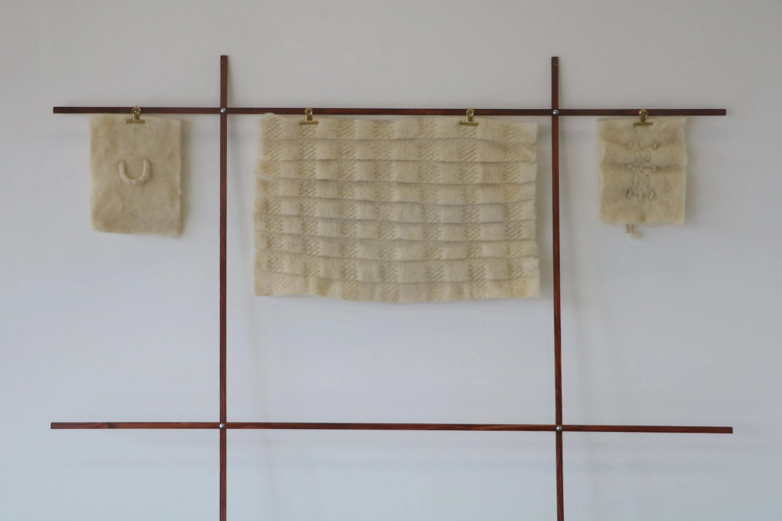 Dans le “L.Y.F.E Show”, Claire a souhaité faire dialoguer sa pratique textile avec d’autres approches autour de la thématique du geste. En déployant ses surfaces de laine dans un espace éclaté et en variant les dispositifs de présentation, elle met en scène la pluralité d’usages et de lectures possibles de cette matière. Cette mise en espace décloisonnée révèle la dimension transversale de son travail, à la croisée du design textile, de l’artisanat et de l’installation. “Manex” devient ainsi un terrain d’expérimentation collective et sensorielle, où le geste, qu’il soit technique, instinctif ou mémoriel, se manifeste à travers les textures, les volumes et les récits de territoire, réaffirmant la vitalité des matières naturelles et des gestes vernaculaires dans nos récits contemporains.